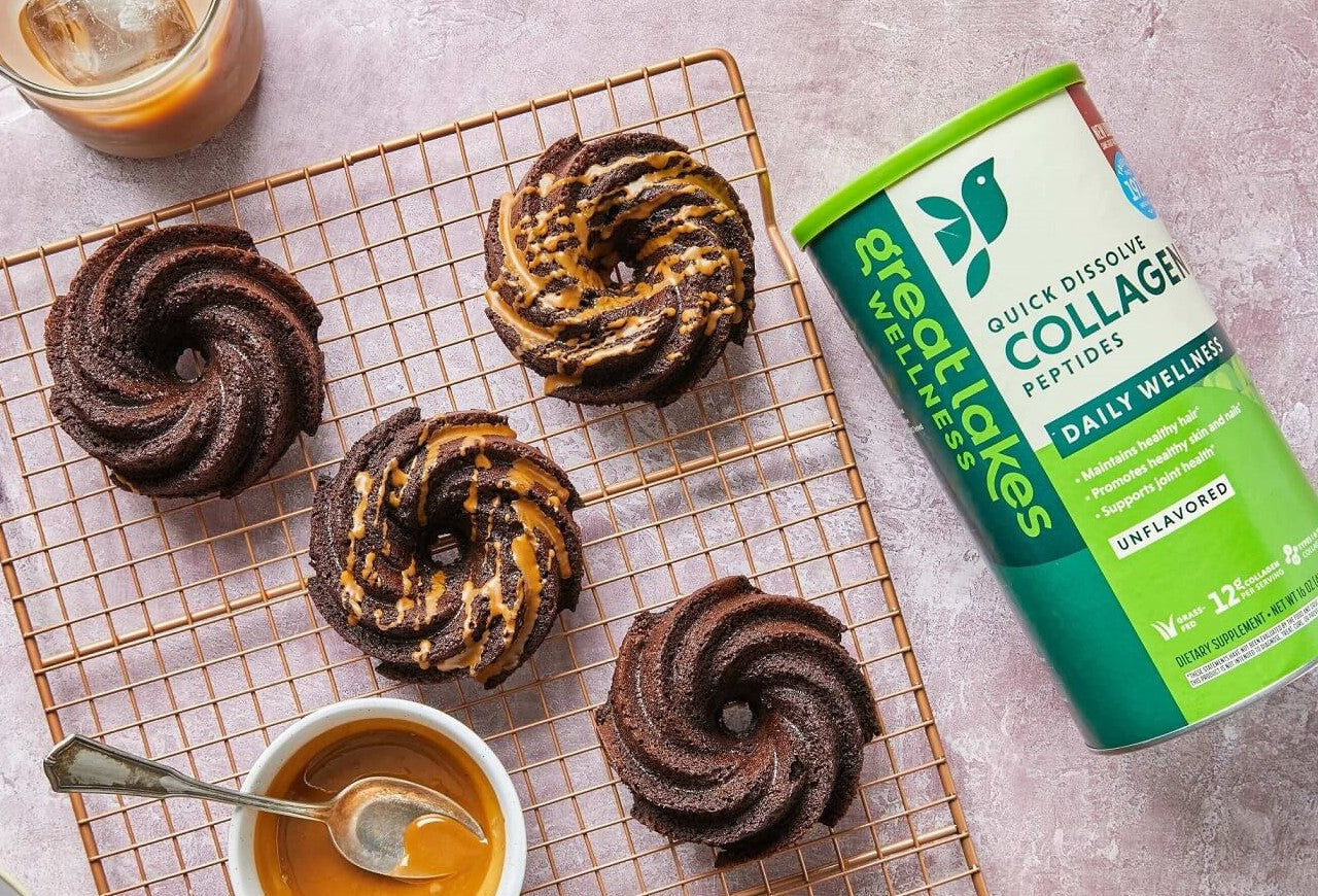 Notes of espresso with a delicious drizzle make these moist mini coffee bundt cakes divine. The addition of Great Lakes Wellness Unflavored Collagen Peptides adds a boost of wellness for your hair, skin, nails, and joints!